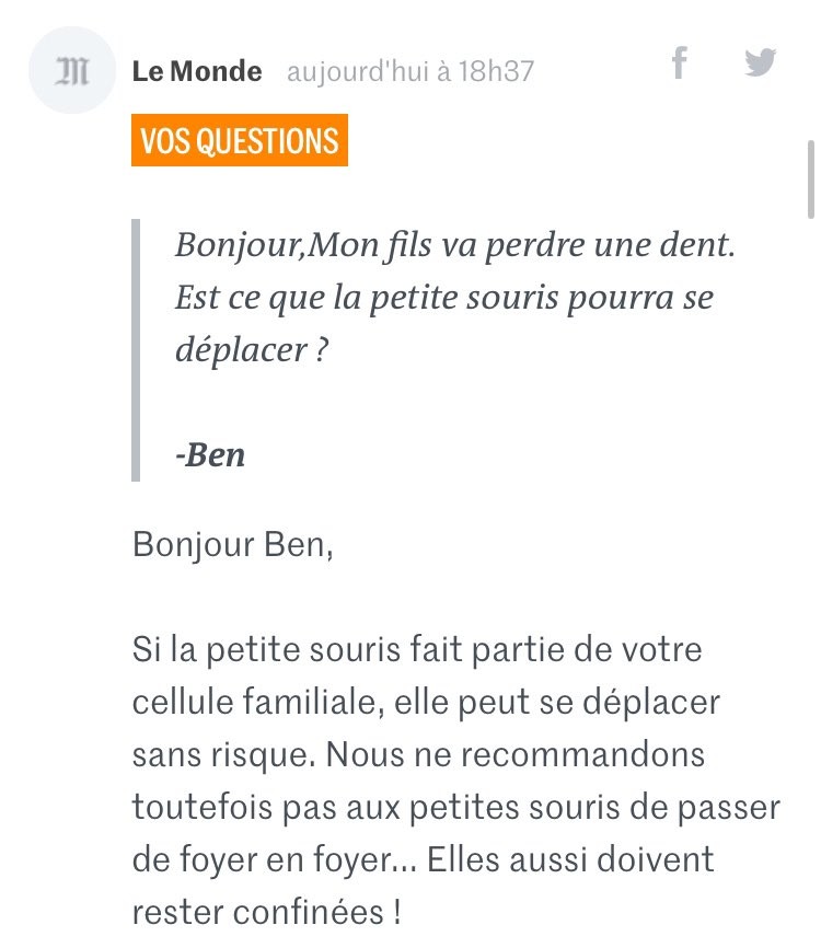 Je fais juste mon possible pour m’informer, garder un esprit critique, et proposer des trucs utiles, tout en restant vigilant malgré ce climat anxiogène. Et si je pointe tout ça du doigt c’est pour vous appeler à rester vigilant. Le plus important c’est de passer cette crise , et on réglera les comptes plus tard. Et pour finir : (on va sombrer dans le défaitisme non mais !)