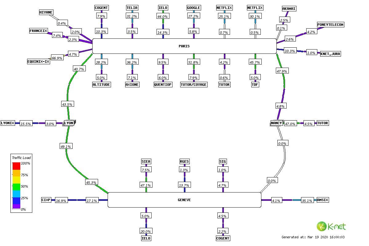- D’autres statistiques de FDN. A notre échelle on remarque une petite augmentation, mais pas de quoi s’inquiéter d’après nos adminsys (et on les aime !). Si FDN peut tenir, Orange (qui possède un gros réseau quand même) devrait s’en sortir.