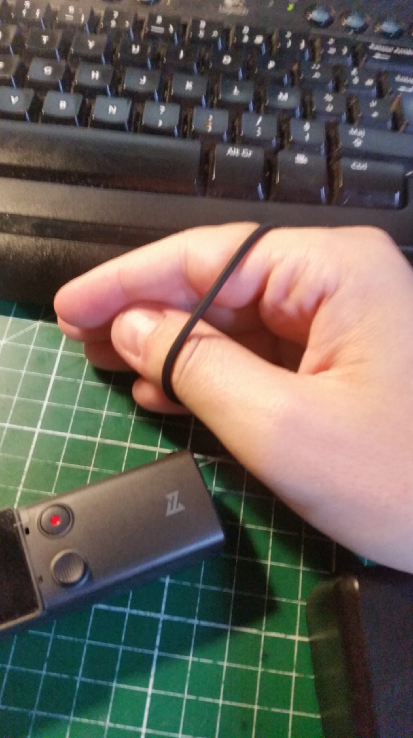 Cette petite dragonne est en silicone (qui va mal vieillir), et de piètre qualité (la tresse de nylon a rompu a la première utilisation laissant apparaître le fil plastique (c’est lui qui reprend les efforts) et bien que le silicone est un peu élastique, impossible de le passer au poignet. (En vrai, en forçant ça passe mais j’ai peur de le casser à chaque fois que je l’enfile ! Et c’est pas confortable) J’ai préféré l’attacher à la caméra plutôt qu’a la coque (ça me semble plus logique) mais du coup elle gêne et vous ne pouvez plus rentrer la caméra dans son étui… Encore quelques photos :